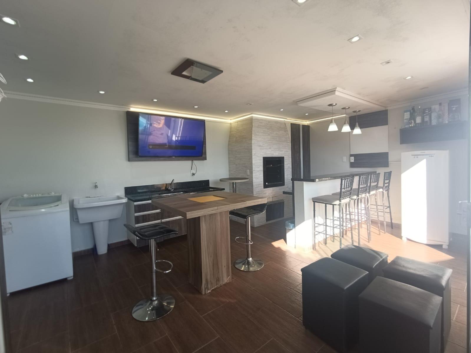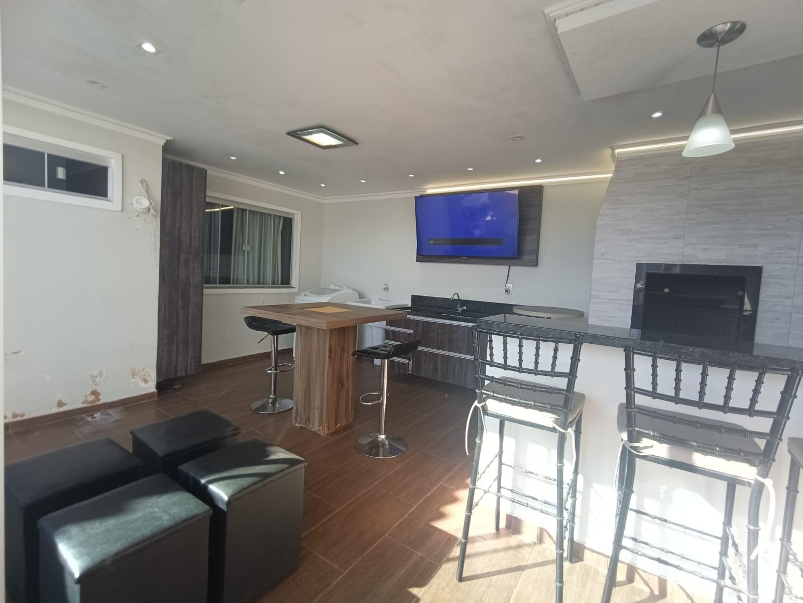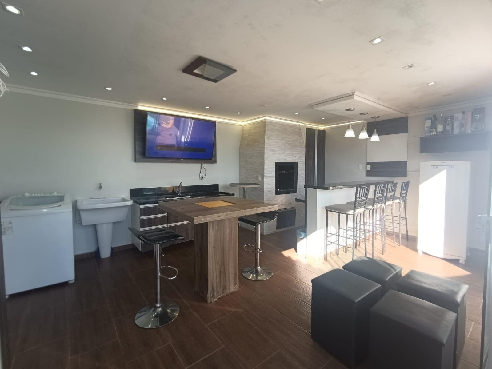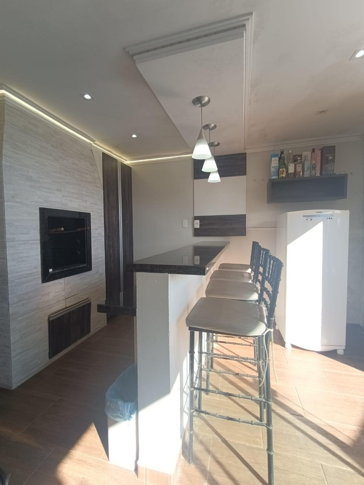Área gourmet com churrasqueira e bancada